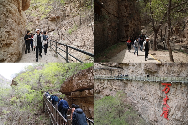 參觀活動結(jié)束后,大家開始游覽京東大峽谷,沿著崎嶇的山路,欣賞大峽谷鬼斧神工的自然景觀。漫步于美麗的龍門湖,看群峰倒映水中;依崖而建的人工棧道,猶如攀巖在懸崖峭壁上,大家身臨其境,感受當(dāng)年軍民抗日的艱難險境;天然形成的五龍?zhí)丢?dú)居特色,有的深不可測,有的靜若處子,有的湍瀉奔流,為大峽谷增添了靈氣。大家在曲折陡峭的山路中穿行,互相鼓勵,相互扶持,順利通過。一路游覽,一路暢談,一路體驗(yàn),大家感受到了自然風(fēng)光的美麗和今日生活的美好。